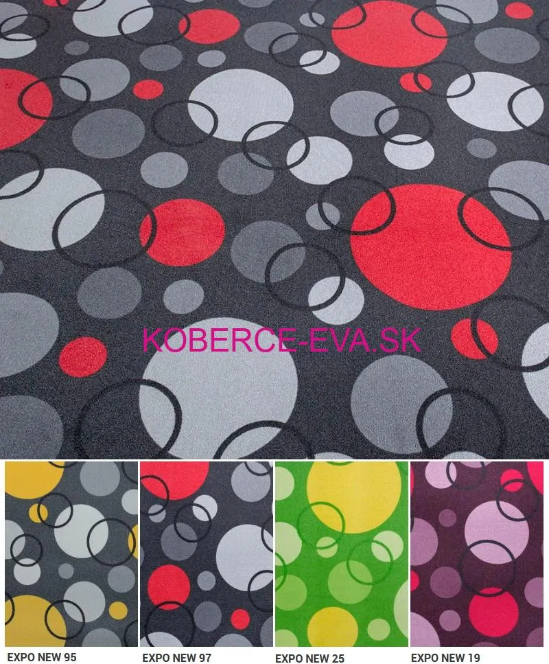 Slučkový koberec Expo new s veselou farebnou potlačou upúta každého. Hravý koberec Expo new je vhodný do všetkých moderných priestorov, detských a študentských izieb.