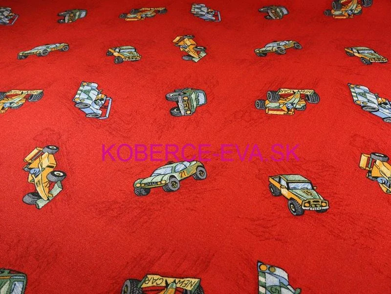 Detský metrážny koberec Racer je vyrobený z materiálu 100% Polyamid s podkladom filc a je dostupný v jednom farebnom prevedení - červenom. Nakoľko je koberec plný rôzných autíčok je vhodný viac do chlapčenských detských izieb, materských škôl, základných škôl, detských kútikov ... atď.